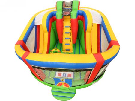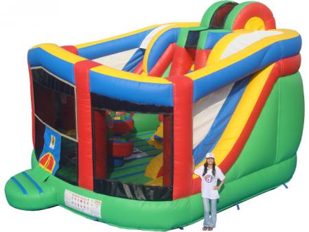 El Trilenium Combo es un inflable que contiene muchas actividades en su interior. Tiene un túnel, obstáculos, aros de basketball, resbaladeras entre otros. Imposible aburrirse!
